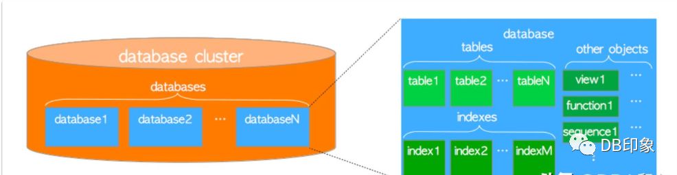 注意:这里的db cluster并非普通意义上的集群,PostgreSQL中的database cluster翻译理解为“集簇”更适合,在层级上对标Oracle 12C实例。