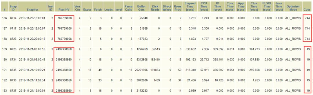 2019-11-21 零时左右, 某重要业务SQL执行计划发生改变,执行效率严重下降。下面是采集到的sqlhc信息(数据库版本 11.2.0.4):