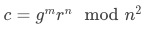 加密 调用Paillier加密算法,对m进行加密,得到c。