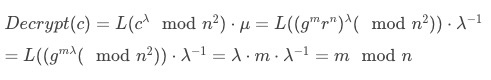 解密 调用Paillier解密算法,对c进行解密,得到m。