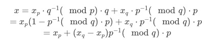 下做的模指数运算。在拥有私钥(n的分解p、q)的情况下,可以使用CRT将