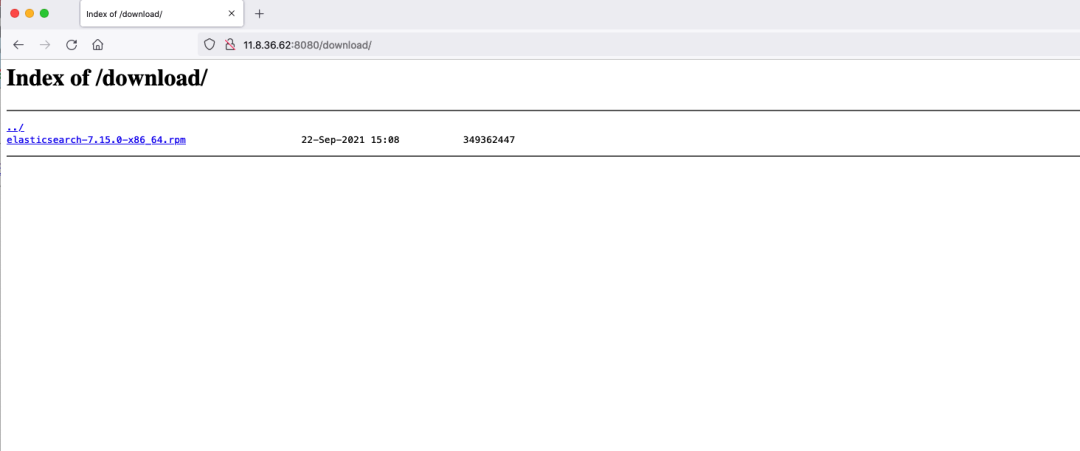 由于我们的机器无法直接访问公网下载 Elasticsearch 安装包,这里提前从 [Elasticsearch 官网] (https://www.elastic.co/guide/en/elasticsearch/reference/current/rpm.html) 下载好 RPM 包传到内网的服务器上。接下来在服务器上通过 Nginx 部署一个 Web 服务,在 Ansible 部署 Elasticsearch 的时候会通过 es_custom_package_url