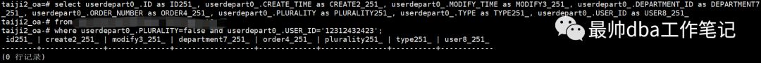 LINE 3: where userdepart0_.PLURALITY=false and userdepart0_.USER_ID=...