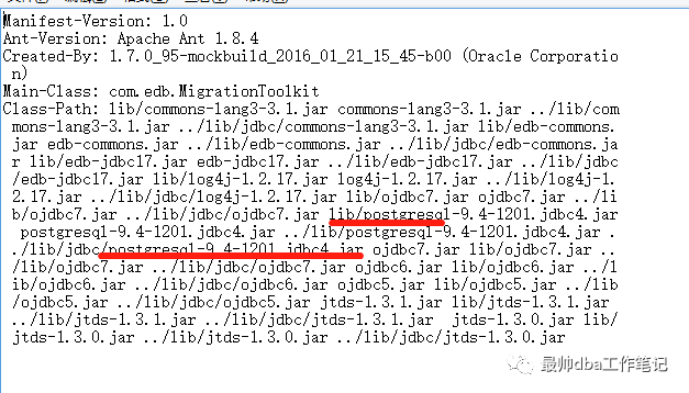 打开这个文件我们发现,在这个文件下这个工具所指定的数据库驱动包是postgresql-9.4-1201.jdbc4.jar,而我们的驱动包是postgresql-42.2.5.jar