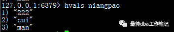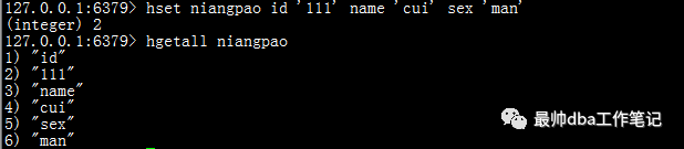 这个时候在查看这个hash表的时候如果想要查看当前hash表当中的所有的域的话,用到的就是hgetall