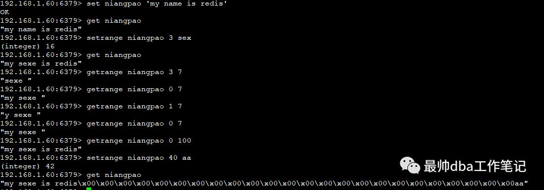 我们可以看出setrange是将string类型的key当中的字符从第几个偏移量开始改变key的内容,getrange是从key当中取出对应偏移量的value。从0开始是第一个字符。