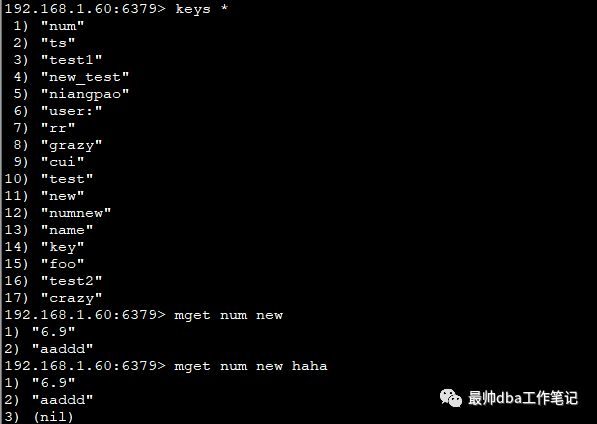 mget批量得到key的值,如果这个key不存在,则返回nil