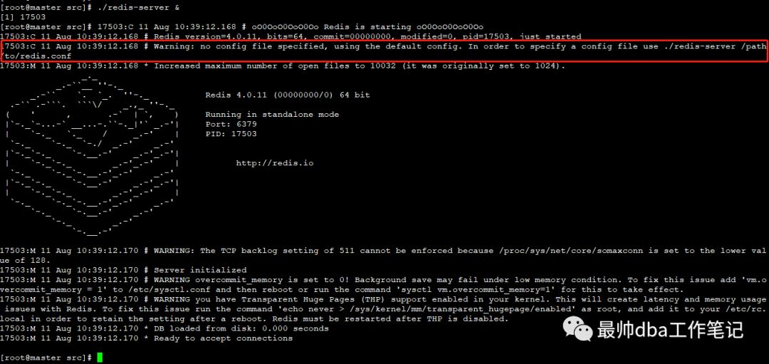 不使用redis.conf文件启动server端,其会以默认的config文件进行启动。
