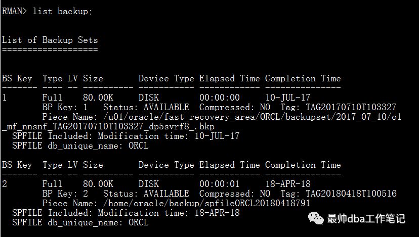 Piece Name: /home/oracle/backup/spfileORCL20180418791