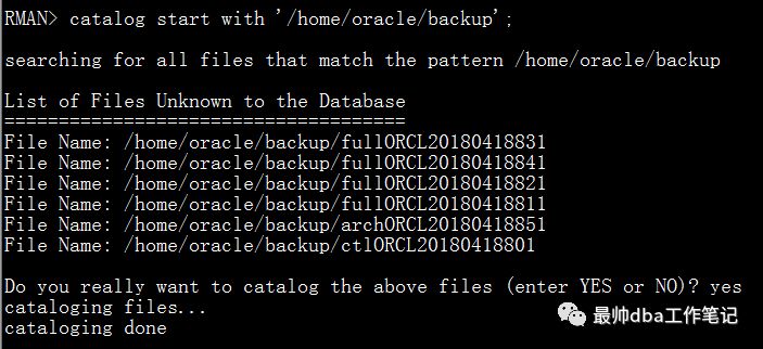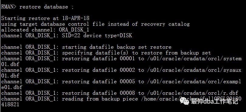 对应的备份片被注册到数据库当中,之后restore database 成功。