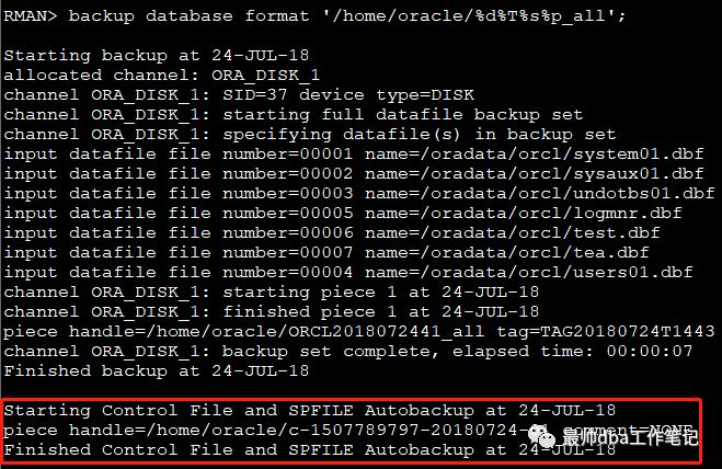 这里备份了控制文件是因为我更改了 CONFIGURE CONTROLFILE AUTOBACKUP ON