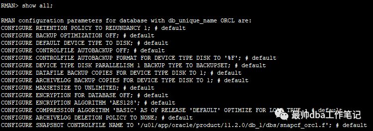 我们登入RMAN 输入 show all