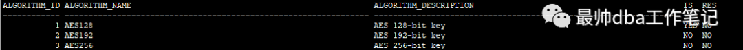 select * from v$rman_encryption_algorithms;