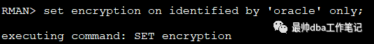 set encryption on identified by 'oracle' only ;