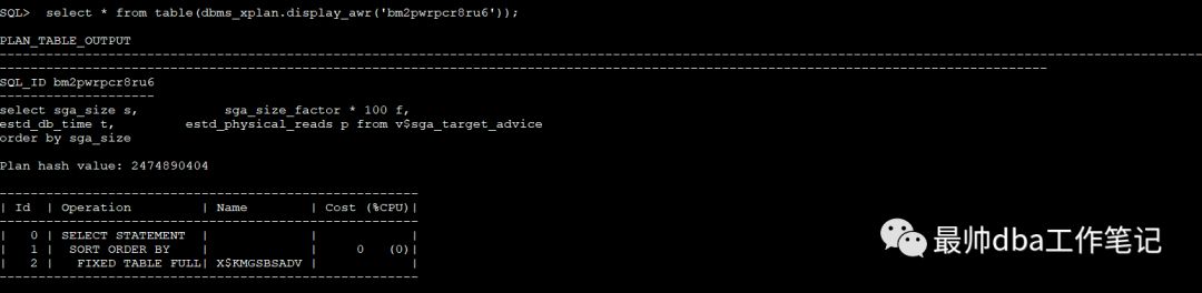还可以通过dbms_xplan.display_awr('sqlid')获取,这是通过awr性能视图当中读取。
