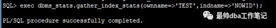 dbms_stats,gather_index_status(ownname=>'TEST',indname=>'NOWID');