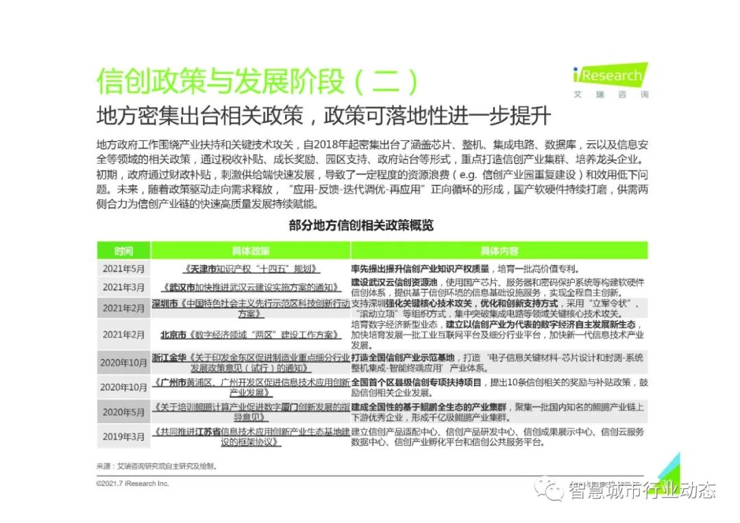 地方政府工作围绕产业扶持和关键技术攻关,自2018年起密集出台了涵盖芯片、整机、集成电路、数据库,云以及信息安全等领域的相关政策,通过税收补贴、成长奖励、园区支持、政府站台等形式,重点打造信创产业集群、培养龙头企业。
