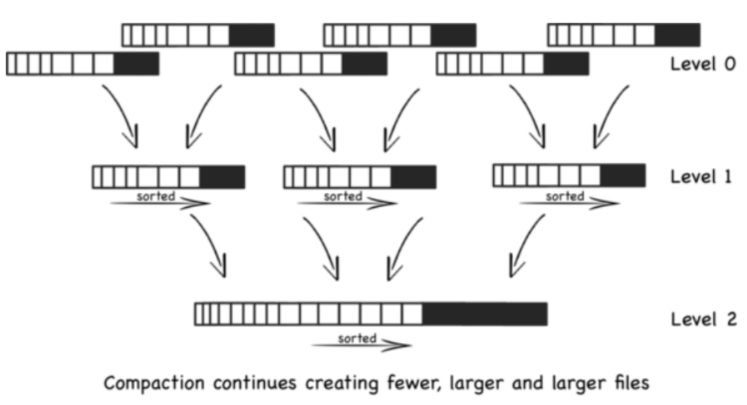 其实不仅是ClickHouse,像ElasticSearch、HBase等其他大数据组件都比较类似。数据写入时会先将数据写入到内存,在内存中对数据进行排序和索引创建,然后批量写入到磁盘文件,后期再通过定时任务将小文件逐步合并成更大的文件,从而减少磁盘IO获取更好的查询性能。整个流程大致如下图所示: