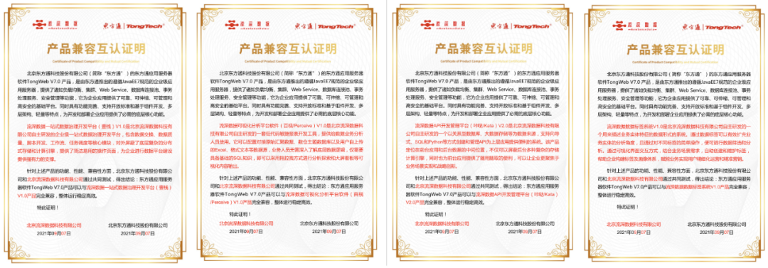 以上四个Java/J2EE软件产品的Tongweb适配完成,结合此前已经完成的基础大数据平台选型和测试验证,流深数据在“基于全国产服务器和操作系统的基础环境下部署、基于国产化应用中间件和数据库的适配、符合专用环境系统管理功能要求”取得了阶段成果,为8个重点行业的客户服务奠定了坚实的基础。