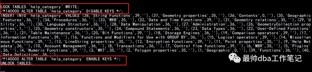 可以从备份出的文件当中看出,在备份每一个表的时候,需要把数据库的每一个表提前会lock table tablename write ;会把对应的表进行写锁。
