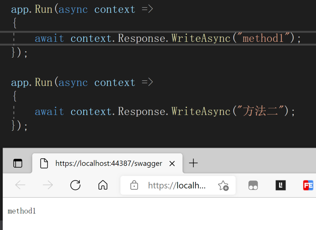 Use方法可以使管道短路(即,可以不调用下一个请求委托)。 Run方法是一个约定, 并且一些中间件组件可能暴露在管道末端运行的Run [Middleware]方法。 Map*扩展用作分支管道的约定。映射根据给定的请求路径的匹配来分支请求流水线,如果请求路径以给定路径开始,则执行分支。