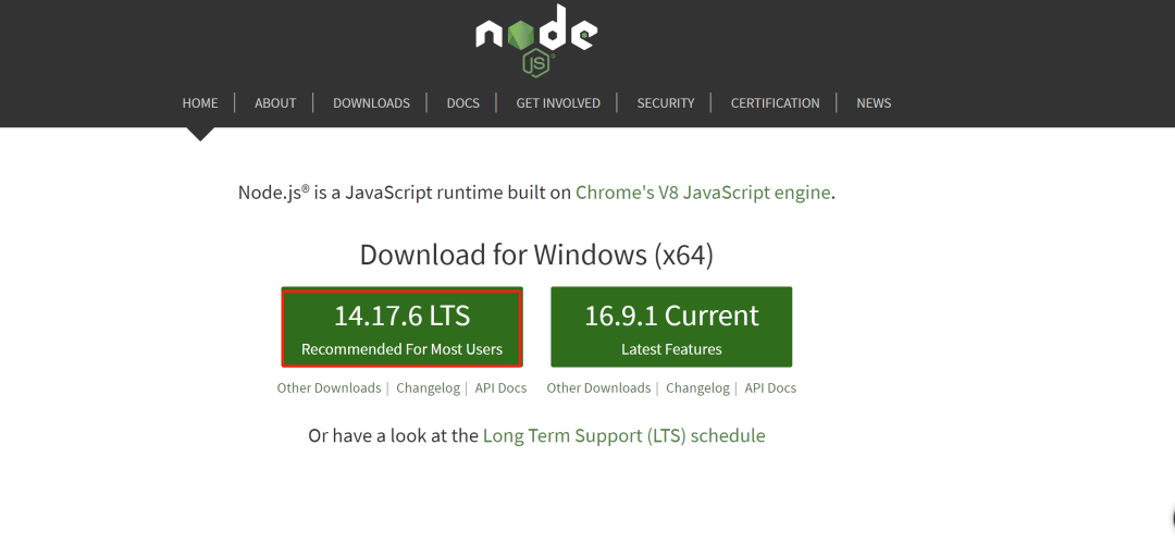 官方下载地址: https://nodejs.org/en/ 下载LTS版本(长期稳定版本)