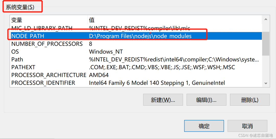 变量名: NODE_PATH变量值: D:\Program Files\nodejs\node_modules