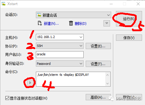 启动xstart后,输入要远程的主机,协议为ssh,用户名一定是oracle(root试过不行),然后点击第4步的小三角,选择对应的系统,最后点击运行,再弹出的界面下输入oracle密码,搞定。打开之后输入xclock或者xhost +测试下,是正常结果则OK。