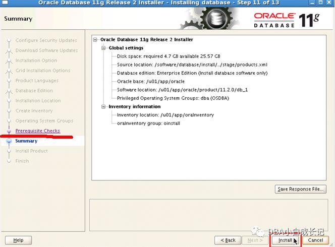 然后再./runInstall安装数据库,基本上就没什么问题了。另外,再啰嗦一下DB_NAME必须是文字字符串,且不能超过 8 个字符。