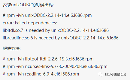 安装下面的包,其中可能会出现问题的是unixODBC这个包,解决方法如下: