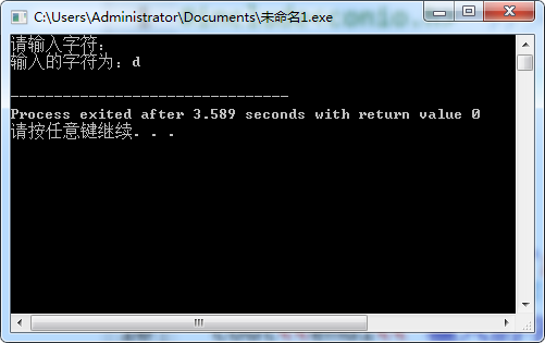 #include<conio.h> //头文件#include<iostream>using namespace std;int main(){char data;cout<<"请输入字符:";data=_getch(); //等待你按下任意键,然后结束cout<<endl<<"输入的字符为:"<<_putch(data)<<endl;return 0;}