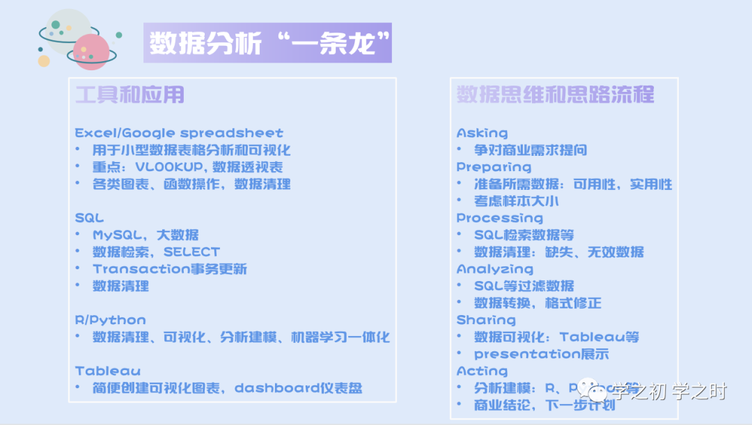 先来谈“一条龙”学习数据分析都包括哪些重点。上一期分享我有提到