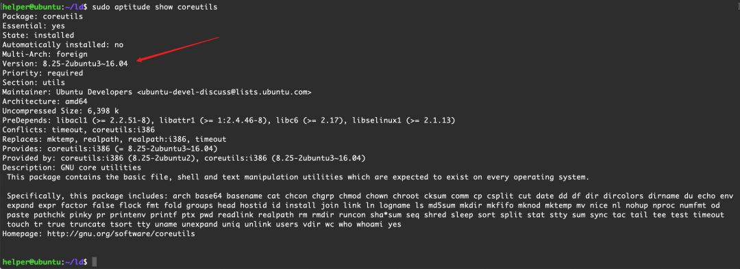 第二个链接是 ubuntu 的,我们可以通过 sudo aptitude show coreutils