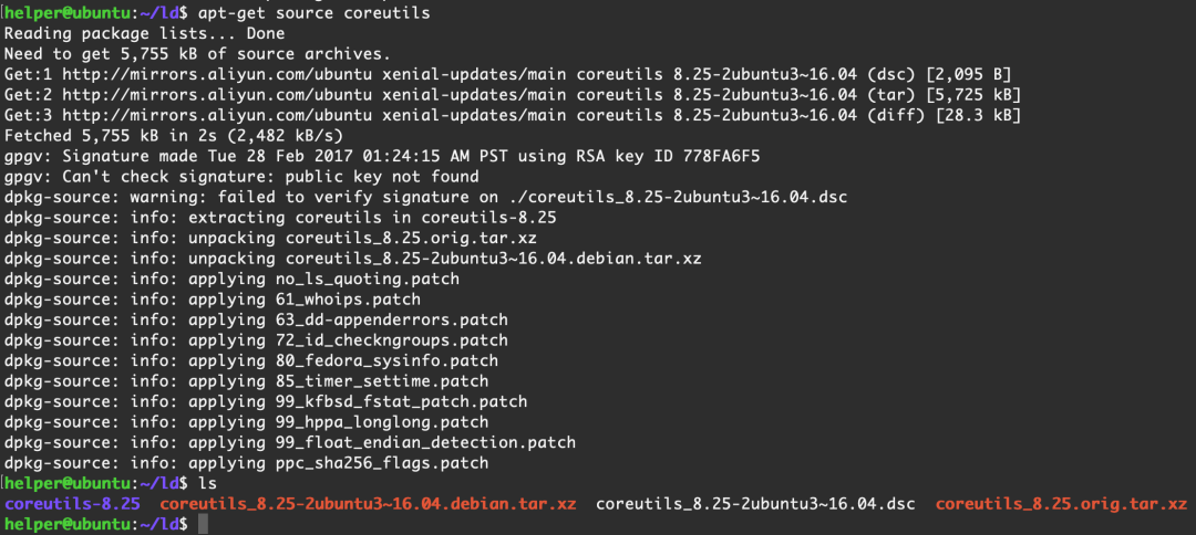 可以看到是 8.25 版本,于是乎,我下载了 ubuntu 的 8.25 版本的 coreutils 源代码进行查看,如果想在ubuntu上直接下载源代码可以使用 apt-get source coreutils