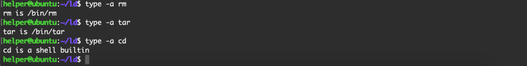 所以 cd pwd 内置命令执行的时候不会加载外部共享库,也就是不会去加载我们的 hook.so ,更不会劫持 puts 函数