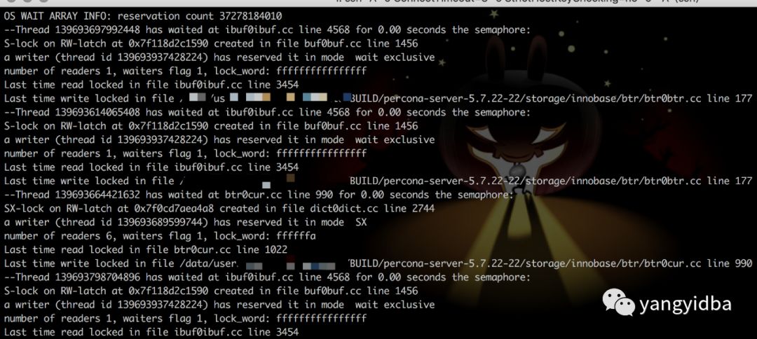 看代码锁位置像是在等待各种Buffer Pool的各种latch。为啥会等待在这里呢,又没有DDL相关的SQL,于是百思不得其解。问题诊断一时间陷入困境。