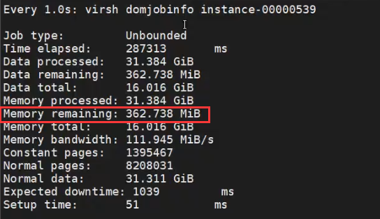 watch -n 1 virsh domjobinfo instance-00000539(或者使用id,watch -n 1 virsh domjobinfo 8)