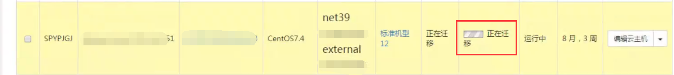 注意:若步骤5的1图确认无误,但是在基础云控制台仍然卡在“正在迁移”,则为请求超时,需要手动更新状态。
