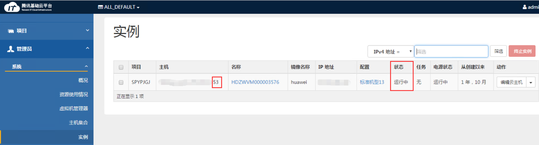 5.确认实例已迁移到目标物理服务器,基础云控制台(dashboard)状态正常