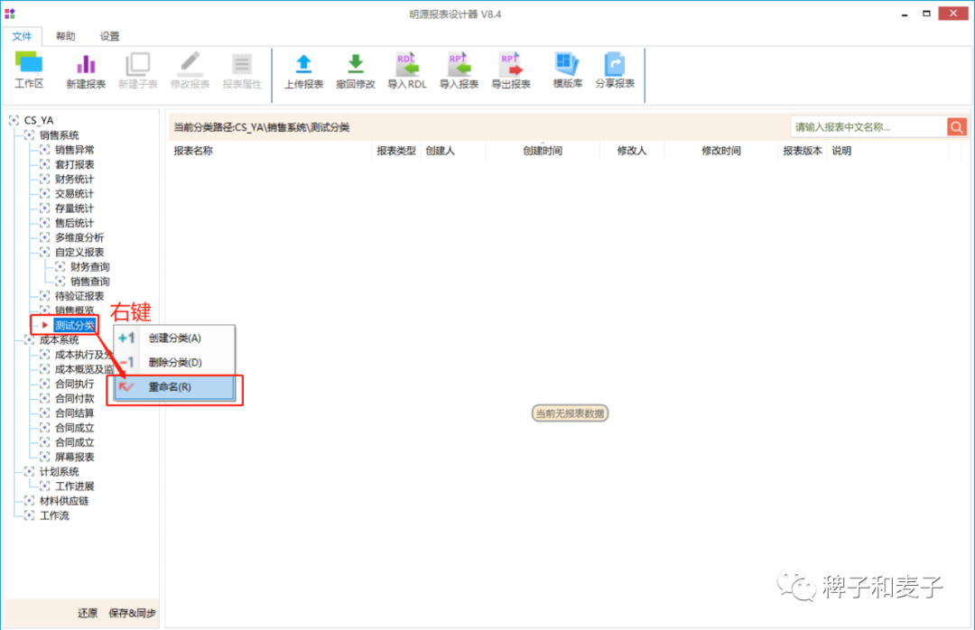 复制&粘贴:操作同Windows文件的复制粘贴,注意【粘贴至子报表】前需要先选中对应的父级报表。