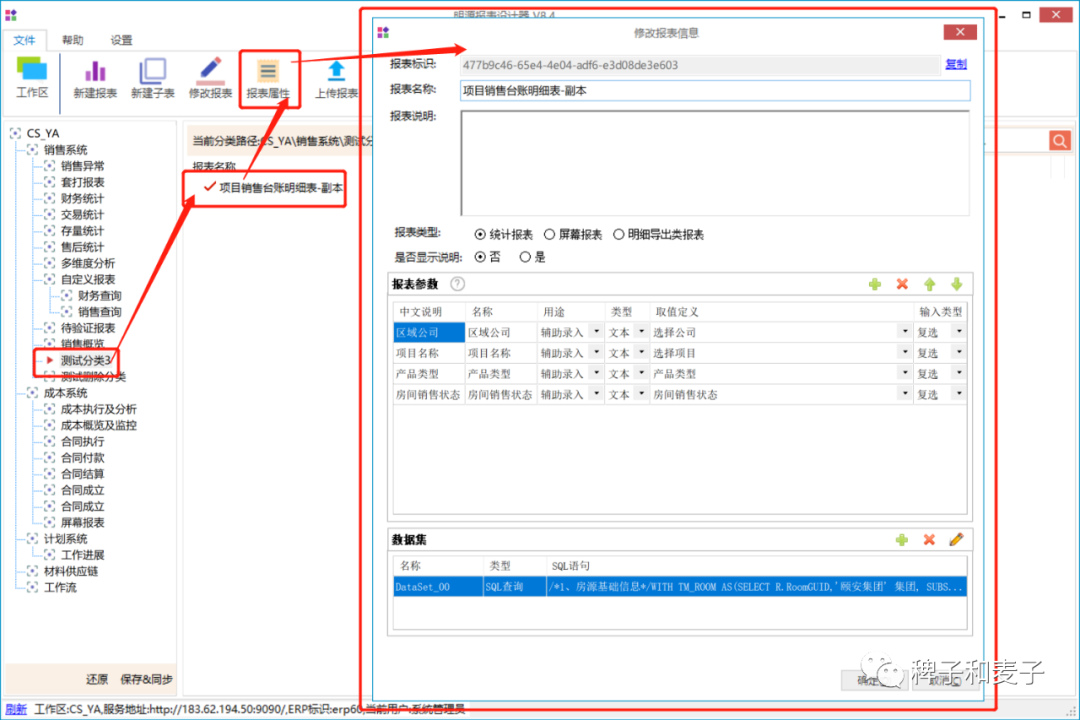 参数维护:维护报表过滤条件调用的相关参数,常见如选择项目、选择公司等