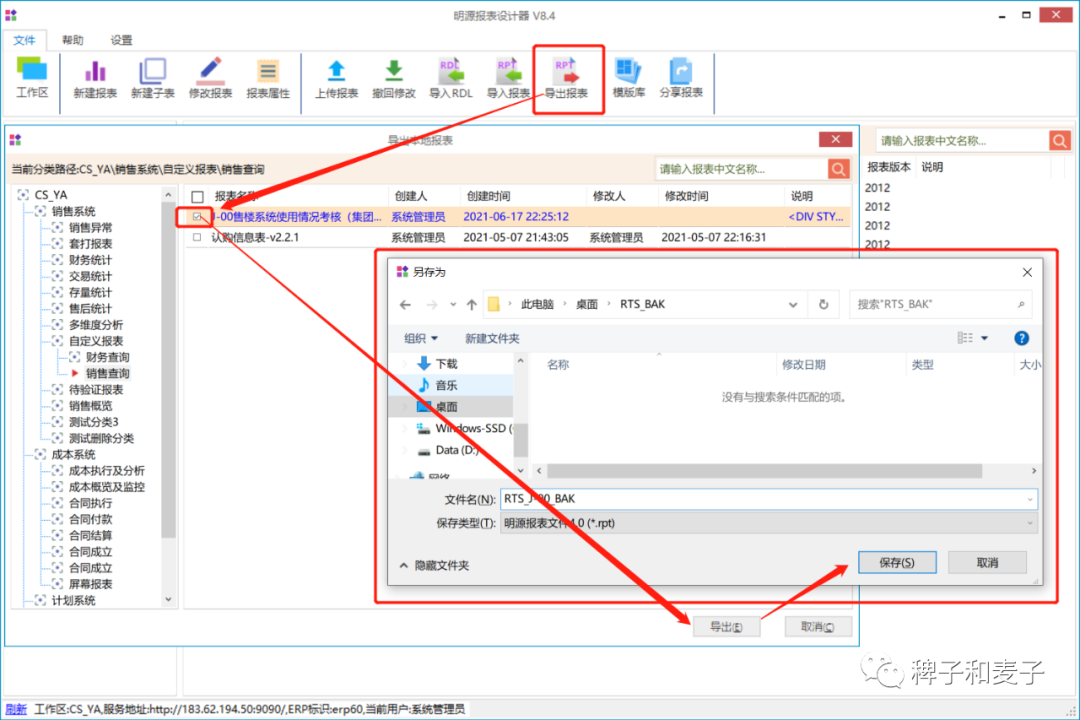 【导入报表】只是从Windows导入至本地RTS,需要【上传报表】才会同步至ERP。