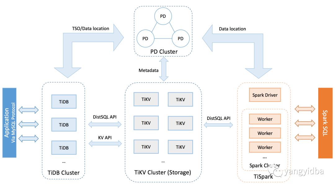 TiSparkTiSpark 作为 TiDB 中解决用户复杂 OLAP 需求的主要组件,将 Spark SQL 直接运行在 TiDB 存储层上,同时融合 TiKV 分布式集群的优势,并融入大数据社区生态。至此,TiDB 可以通过一套系统,同时支持 OLTP 与 OLAP,免除用户数据同步的烦恼。