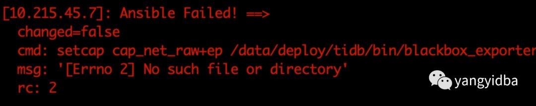 在tidb-ansible/roles/blackboxexporter/tasks/binarydeployment.yml文件里,删除setcap 这个task