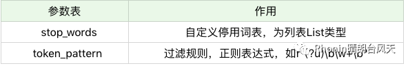 tf = TfidfVectorizer(stop_words=stop_words, token_pattern=token_pattern,max_df=0.5)features = tf.fit_transform(train_contents)