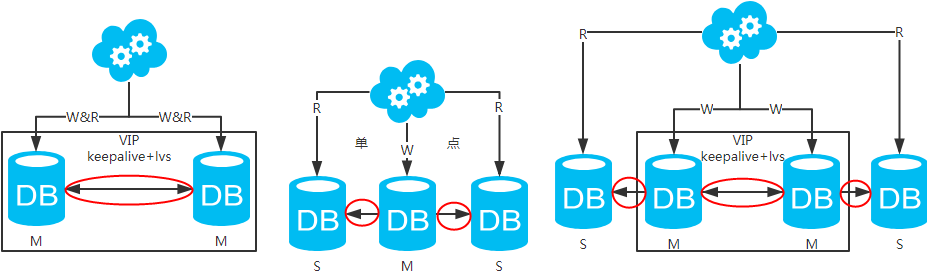 高可用分析:主库单点,从库高可用。一旦主库挂了,写服务也就无法提供。
