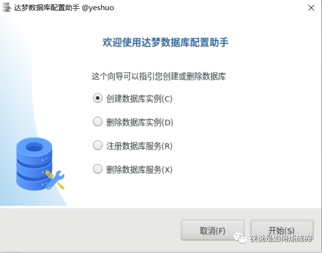 [dmdba@yeshuo tool]$ pwd/dmsoftware/tool[dmdba@yeshuo tool]$ ./dbca.sh[INFO] 启动DBCA