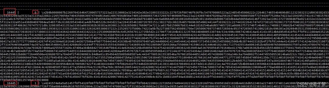 这里的可变长数据是一个JSON报文(使用JSON工具压缩成一行)的字符串。仅列出部分信息,其余部分省略掉。