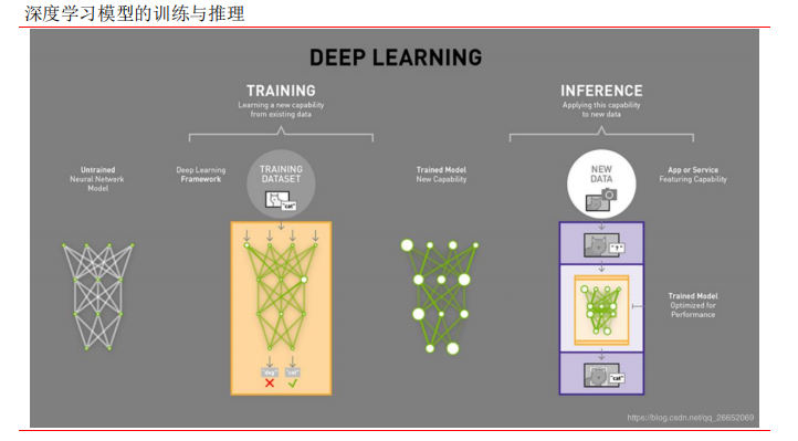 人工智能运行过程中有两部分:训练与推理。“训练”可以看作算法产生的过程。具体而言就是,在现有数据基础上,经过大量计算,确定模型参数,即建立算法模型的过程。“推理”可以看作将算法应用的过程,即在已建立的算法模型基础上,将新数据通过算法模型处理,得出结果的过程。
