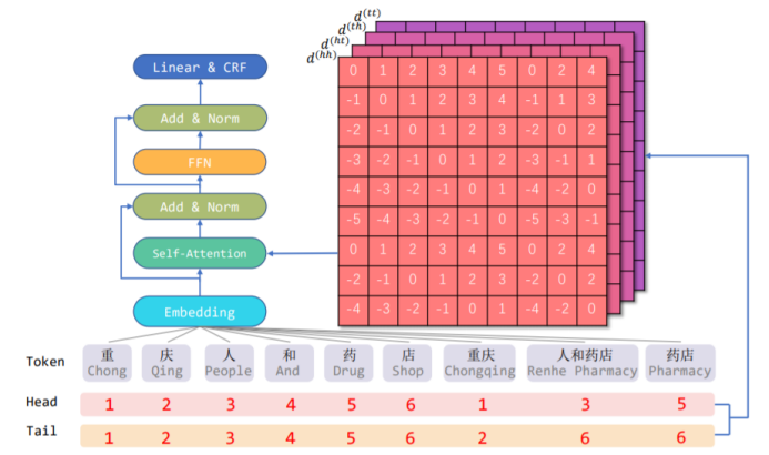实体链接中并不关心实体类型,因此实体识别可以使用 B/I 标签或者指针标注的模式,同时为了提升输入信息的丰富程度,引入词汇信息作为特征补充,试验了 Lattice LSTM 和 FLAT 等结构,实体识别效果提升约 1%。